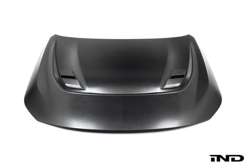 The end result is a piece that will never be duplicated. The Eventuri Yellow Kevlar intake and matching engine cover are exclusive to this IND build and will not be offered for sale, making them a true one-of-one creation. Against the Auratium Green exterior, the yellow weave provides a striking contrast that instantly commands attention and sets the tone for the entire engine bay. Completing the setup, we added an Eventuri gloss carbon strut brace and gloss carbon intake scoops, both of which sit perfectly behind the satin-clear Alpha-N carbon grille, blending function with visual harmony.